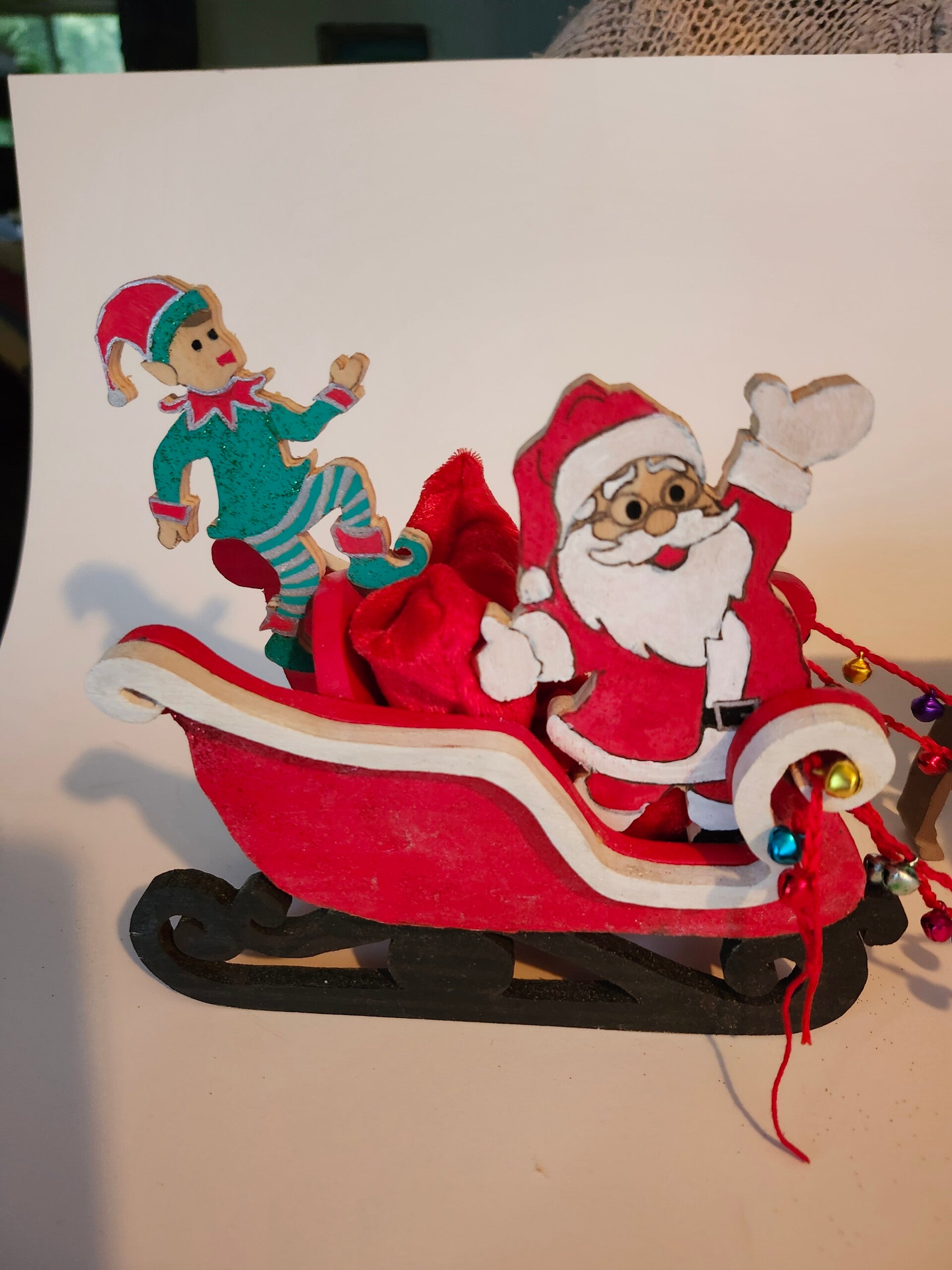 Très beaux traineau avec père Noël, un lutin et 4 reines.